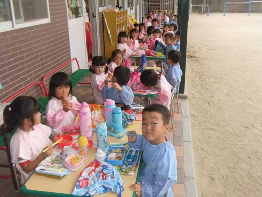 お外に机を並べて食べました