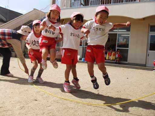 なわとびや、通常マット、人間マットに大はしゃぎ