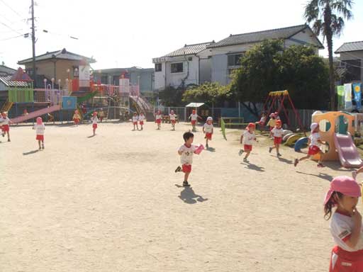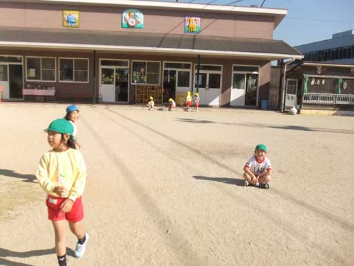 朝から元気に遊んで、園庭のど真ん中で休憩して、