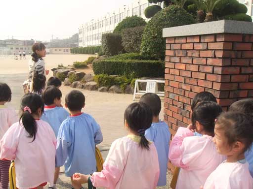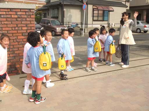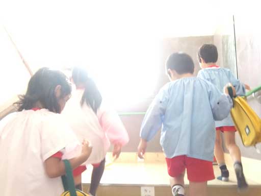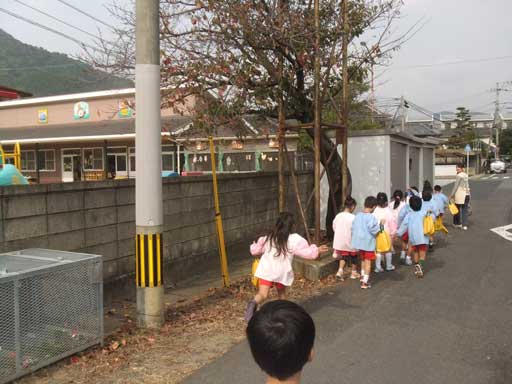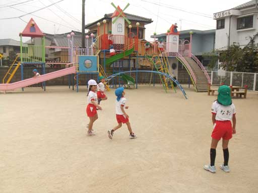 運動場で遊んでいた小学生を見つつ、幼稚園(ホーム)へ!