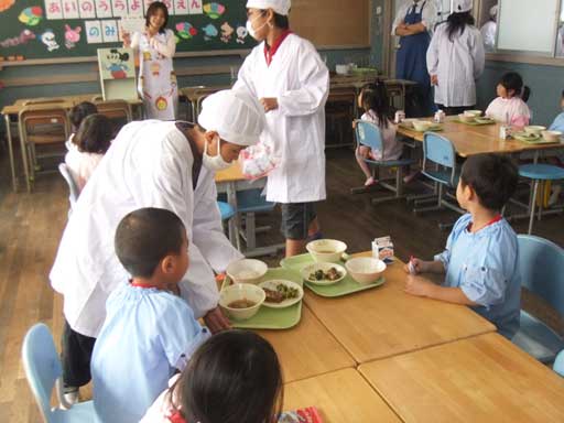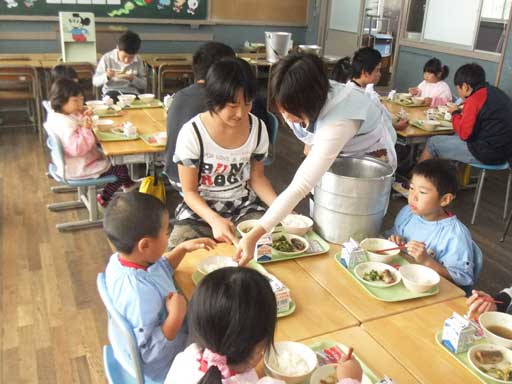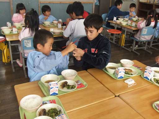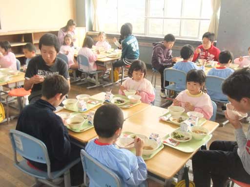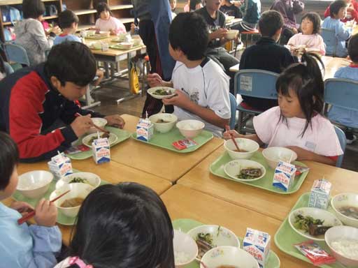 あっという間に食べて、おかわりをする6年生に圧倒されつつ、