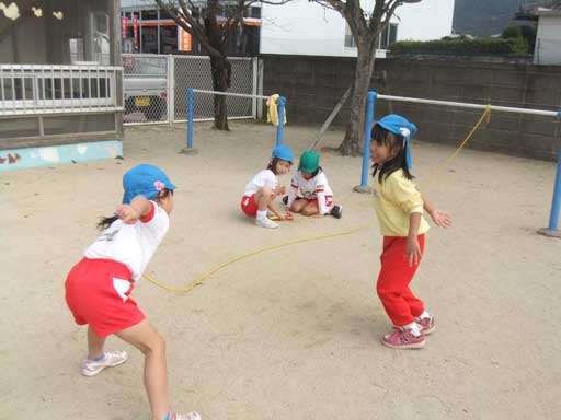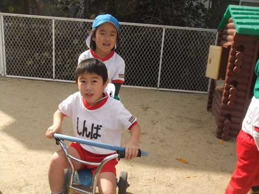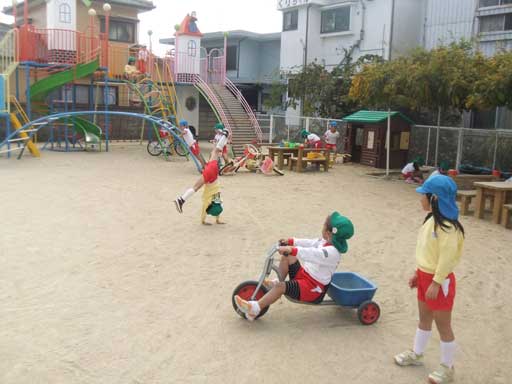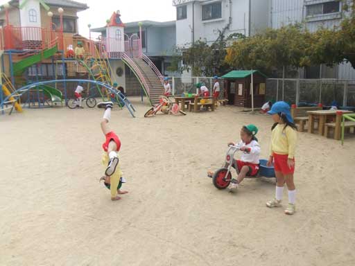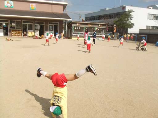 食後、一足お先に食べ終わり園庭で遊ぶ年長組さん!