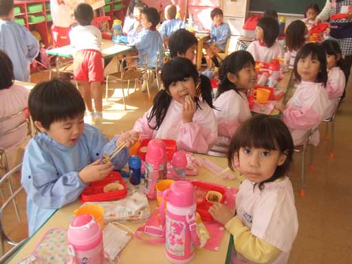 ありましたので、年中組さんにお邪魔して一緒に給食