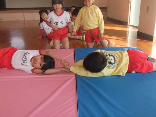 お友だちと 手をつないで 仲良く ゴロゴロ…