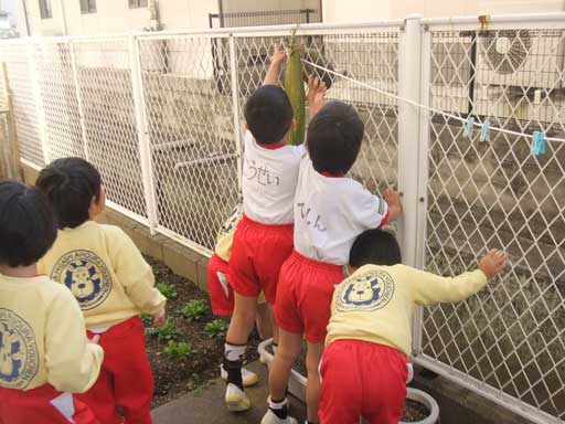 大きなへちまがぶら下がっていて今日は異常に気になった子どもたちが、