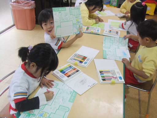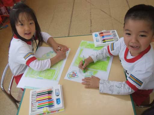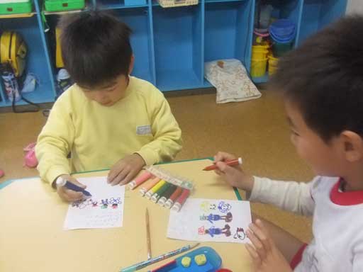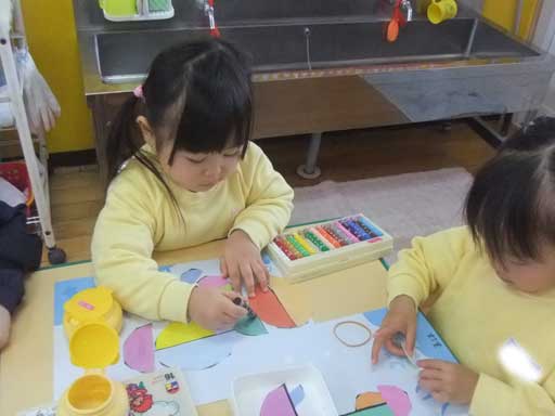 年中さんは夢中で色を塗っています
