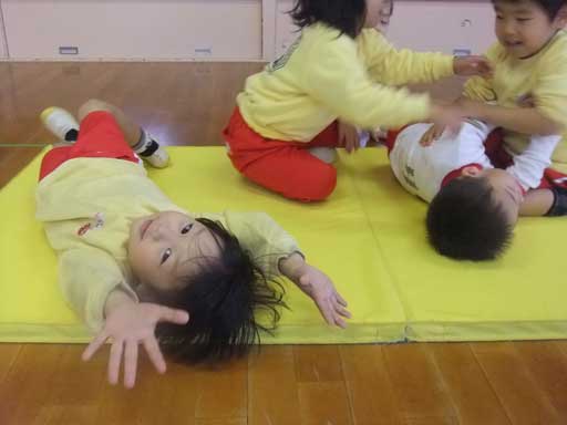 ばら組みんなで てをつないで 前回りをしているところです