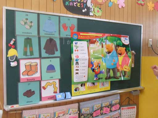 暖かそうなお洋服や、身に付けるものの名前を教えてもらいました