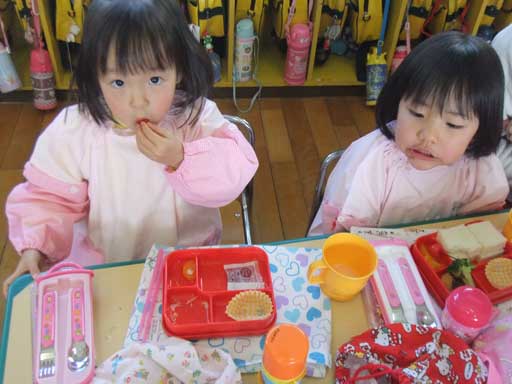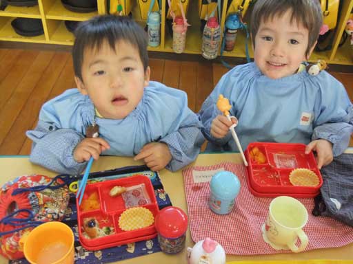 給食の野菜もモリモリ食べる年少さん