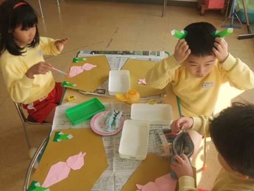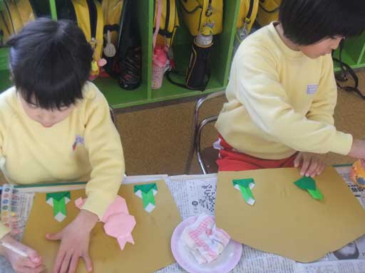 年長さんは、「折り紙製作」