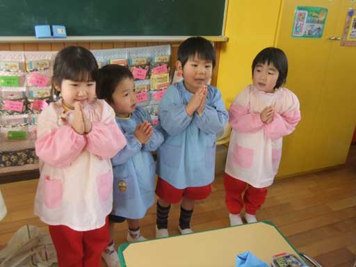 今日のお当番さんが 前に出てきて 『いただきます』