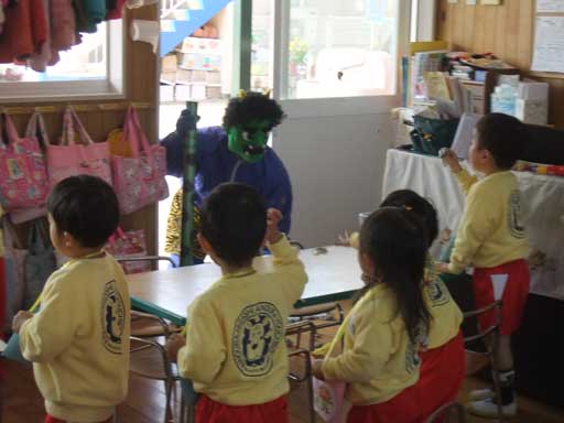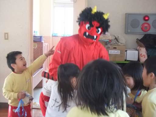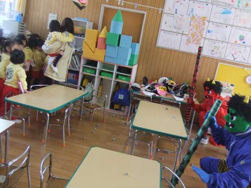 出ました!本物の鬼!!!一番初めに現れたのは年少さんの教室
