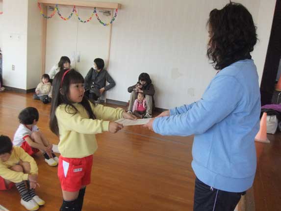 体育クラブ終了後、修了証を大事そうに見せてくれました!