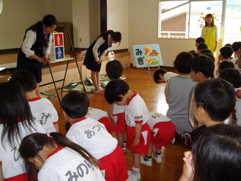 その後は、おゆうぎ室にて“交通安全教室”