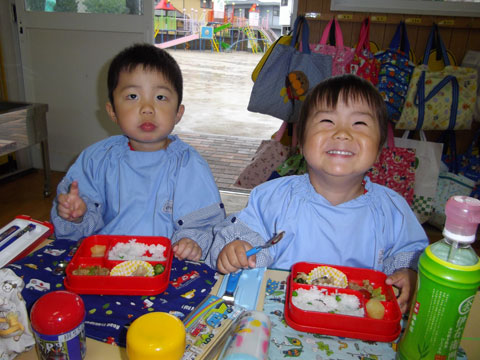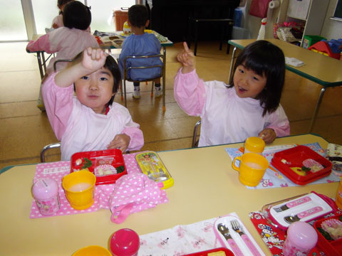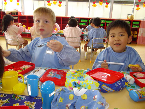 給食を食べて、