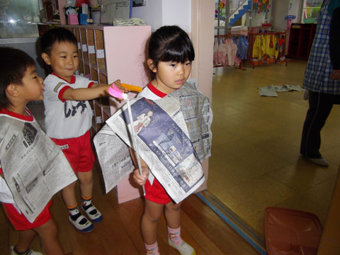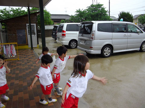 早速、昨日の帰り道には実践している園児も多かったです