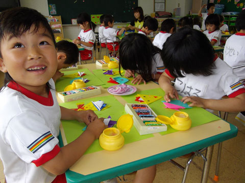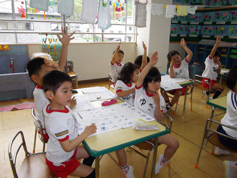 一方、年長組さんは“文字のおけいこ”や製作中