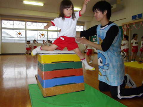 朝からおゆうぎ室で、遊んだり、真剣に跳び箱をしたり