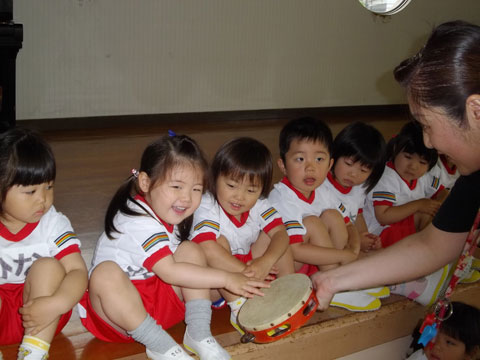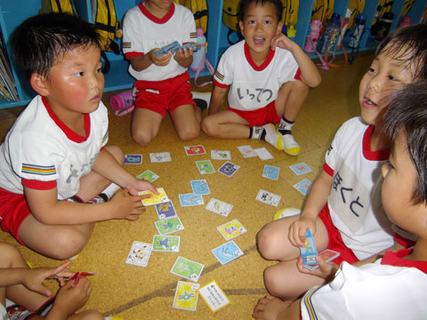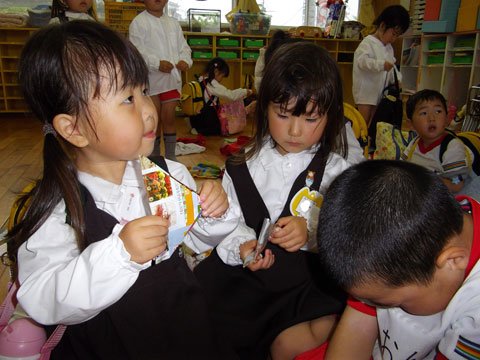 色付きの方はオモチャだと知っている園児たち・・。