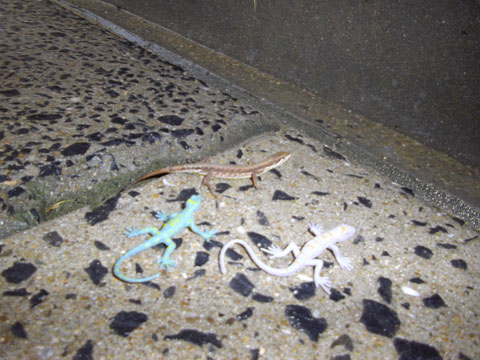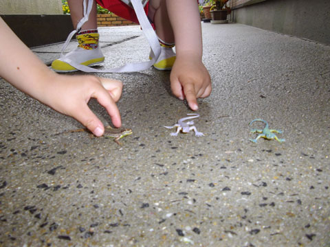 隣にオモチャのトカゲ?ヤモリ?を置いてみました・・。