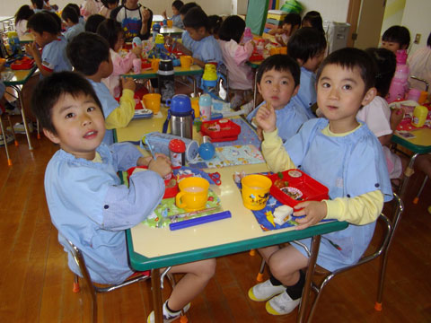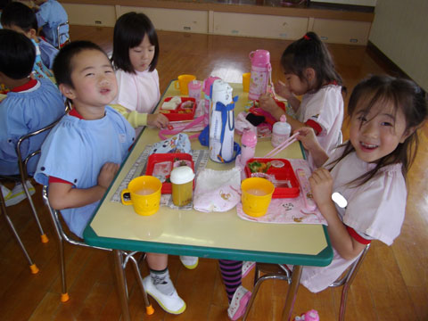 明日の給食は、お母さん・お父さんと一緒に食べますよ