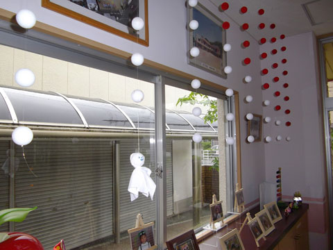今週も忙し・楽しそうですが、玄関の白い玉の飾り、