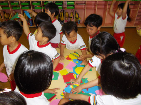 朝から絵本を読んだり、新聞紙で遊んだり、室内での活動