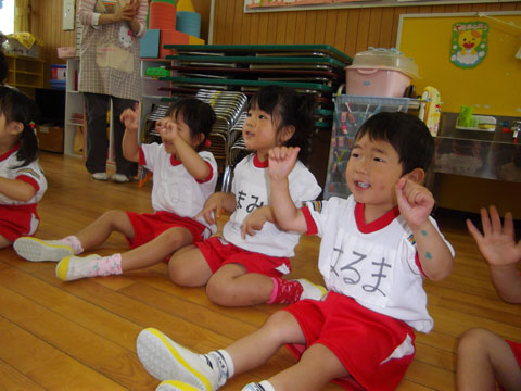 何かやってる園児がいますね。