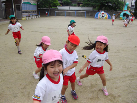 かけっこに夢中の年中組さんの横で、
