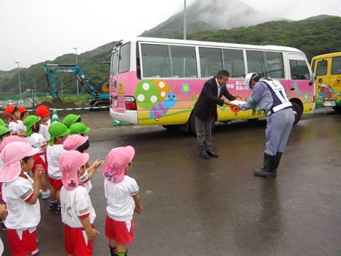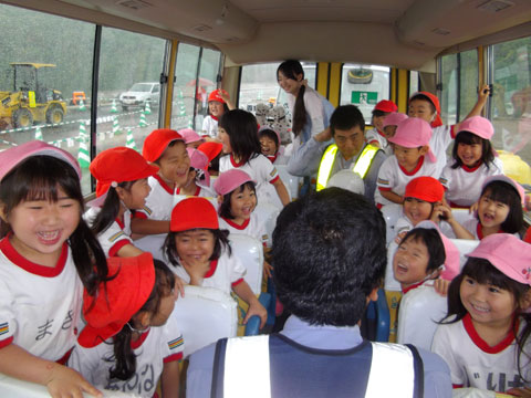 「おかえしにスクールバスにものってください!!」と