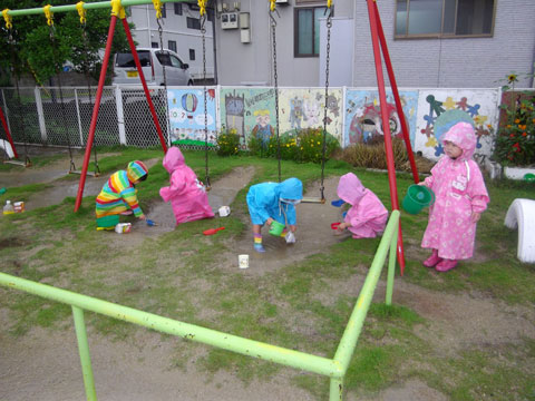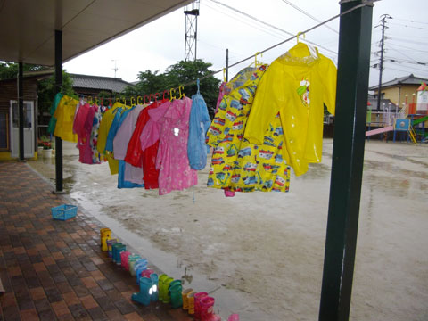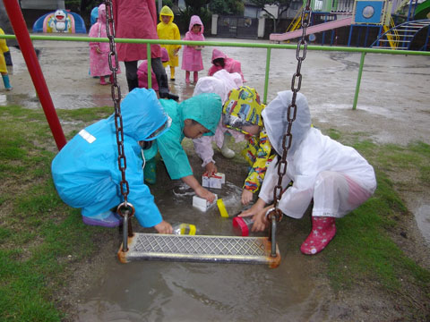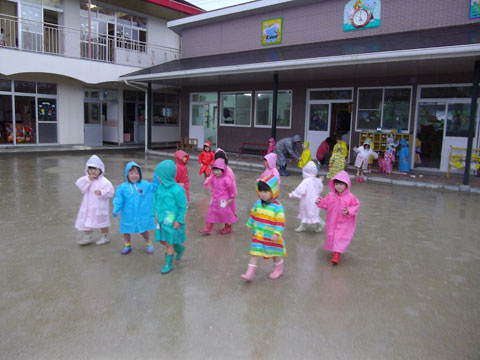レインコート・長ぐつを準備して、園庭へ!