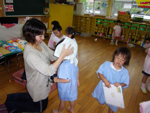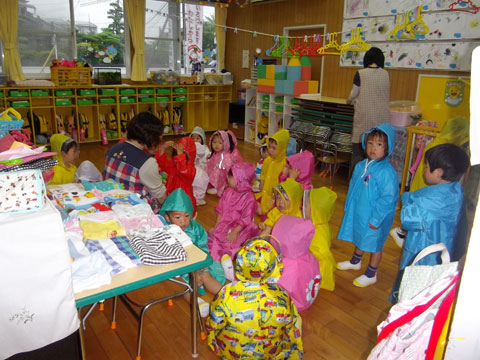 しかし、なぜか戦闘服(レインコート)を着始める年少組さん・・。