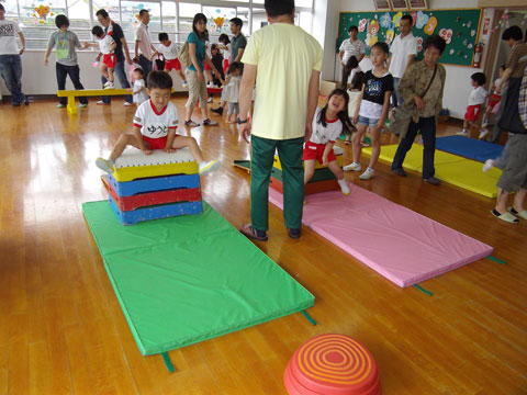 まずは、各教室にてマルモダンスや親子でのダンスを行い、