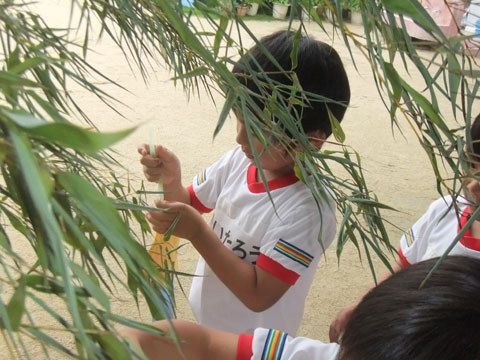 願い事を笹にくくりつけ、