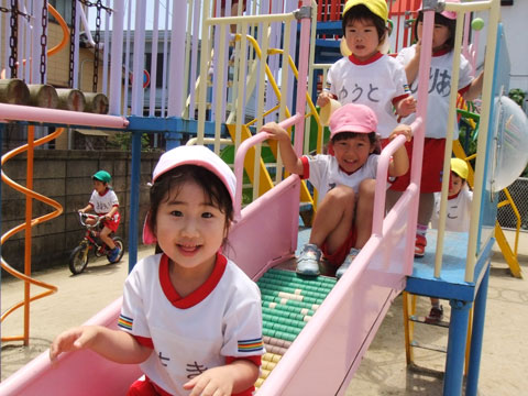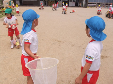 午後の外遊びでは、早くも虫捕り網を手にする園児