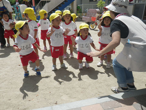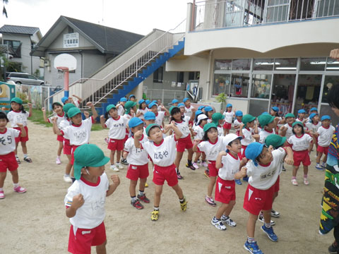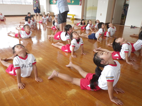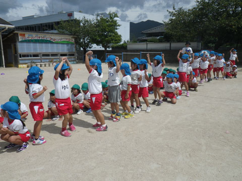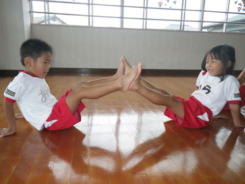 引き続き、年中組さんの組体操