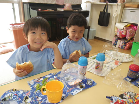 幼稚園で食べる久しぶりの給食ですね