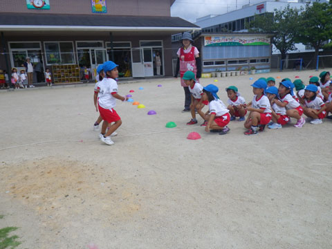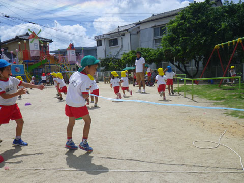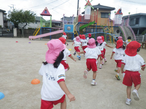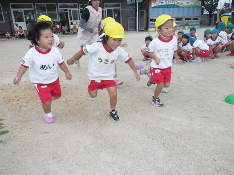 刺激を受けた年中少組さんもトラックが空いたすきに駆け出します