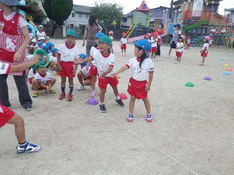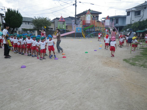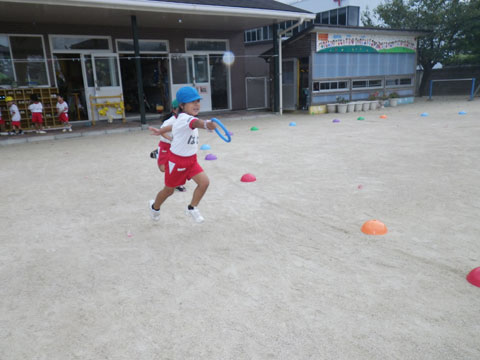 朝から年長組さんがリレーの練習中