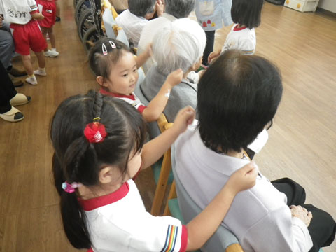 最後のじゃんけんで負けると・・、肩たたき