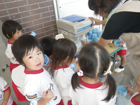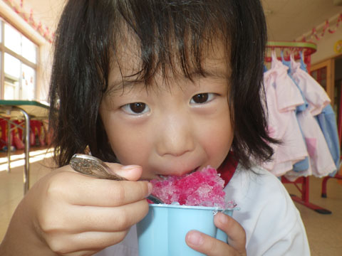 年少組さんがカキ氷中