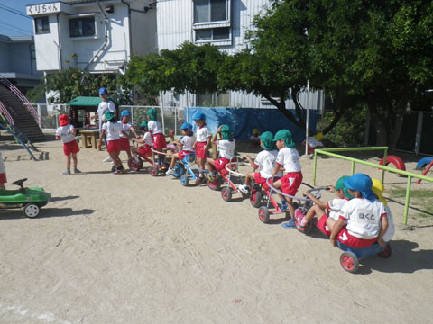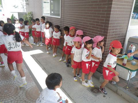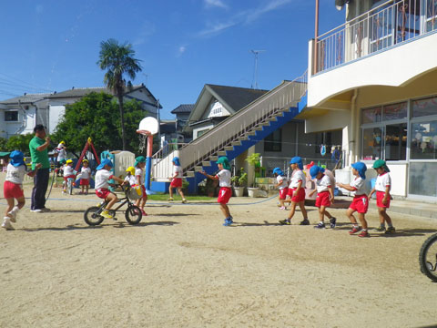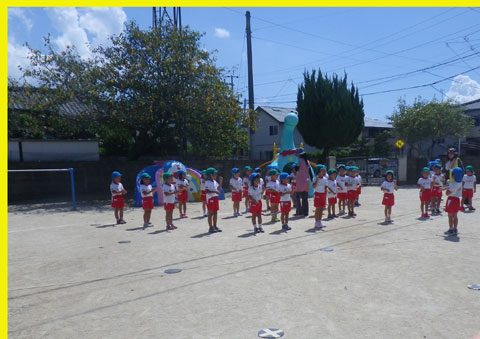 その後、年中組さんは東相浦幼稚園へ直行し組体操