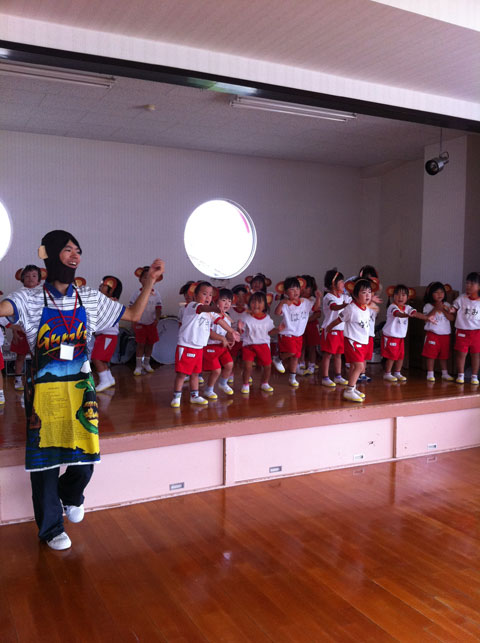 小さなお友だちの前で踊りを披露