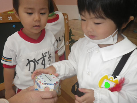 登園後、さっそくお金を大事に握りしめて箱に入れてくれる
