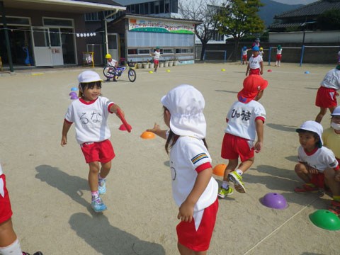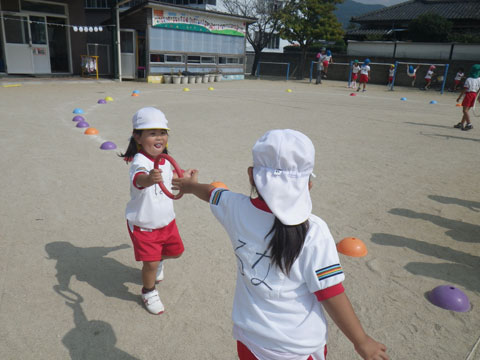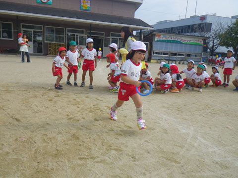 リングバトンのみんなの横で、一緒に踊ったり跳んだり