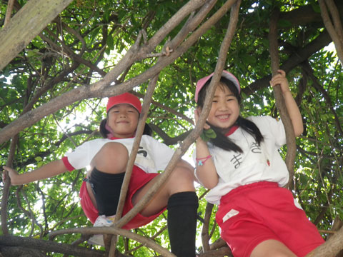 午後の外遊びでは、“もてなしのハート”をインストールするための