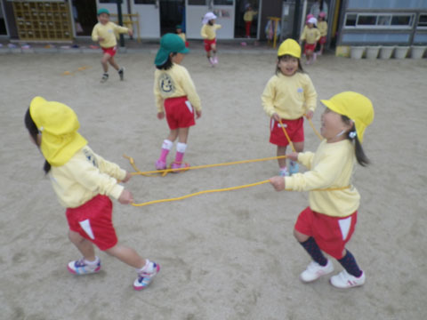全員がなわとびで同じことをしているわけではなく、