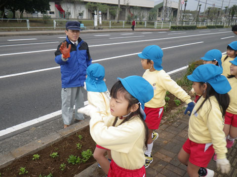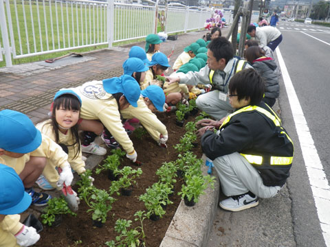 夏に続き、今回も相浦総合グラウンド前の県道沿いへ花の苗を植えます