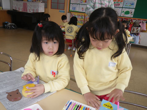 こちらの三学期から相浦幼稚園に来たばかり・・。まだ三日目・・。