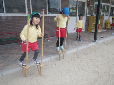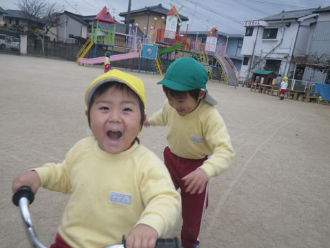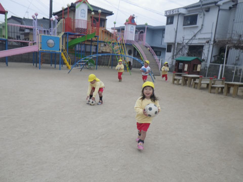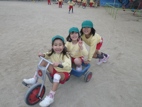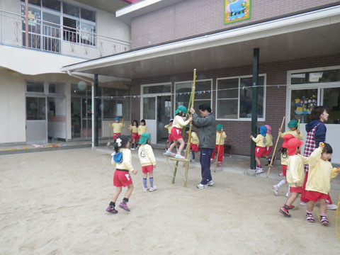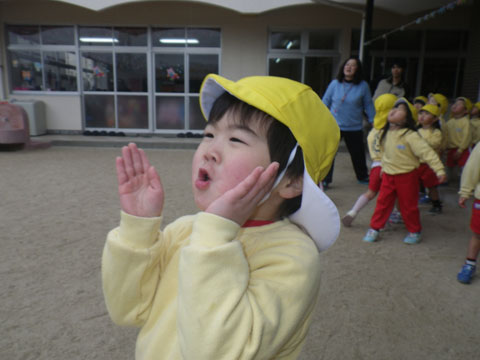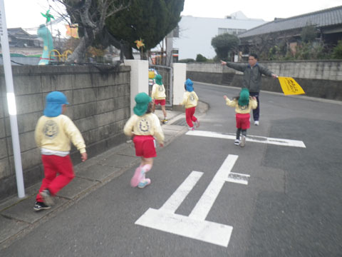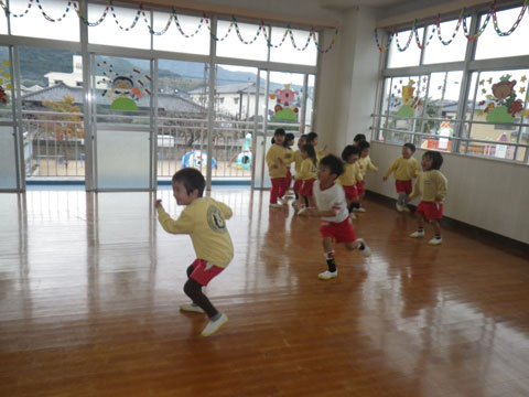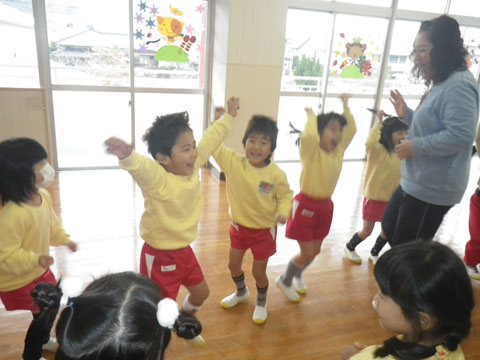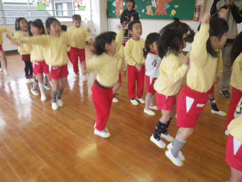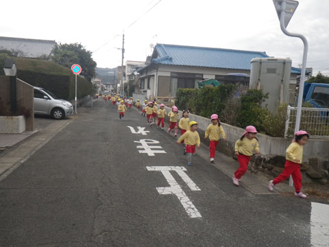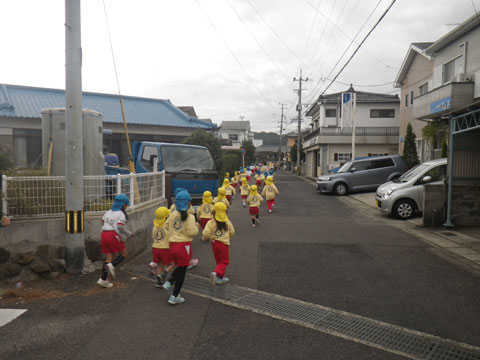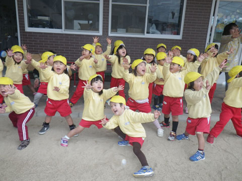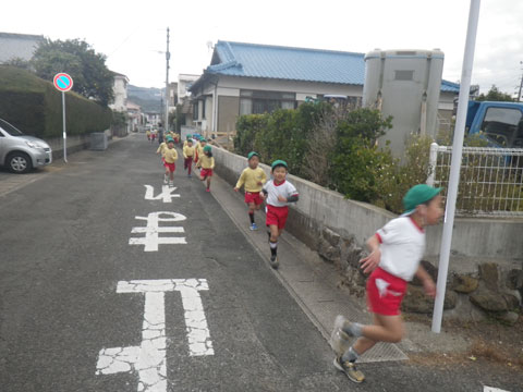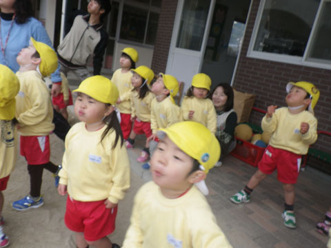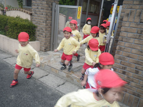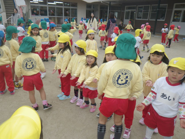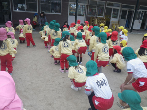 先に終えていた年少組さんがタッチで出迎えてくれました
